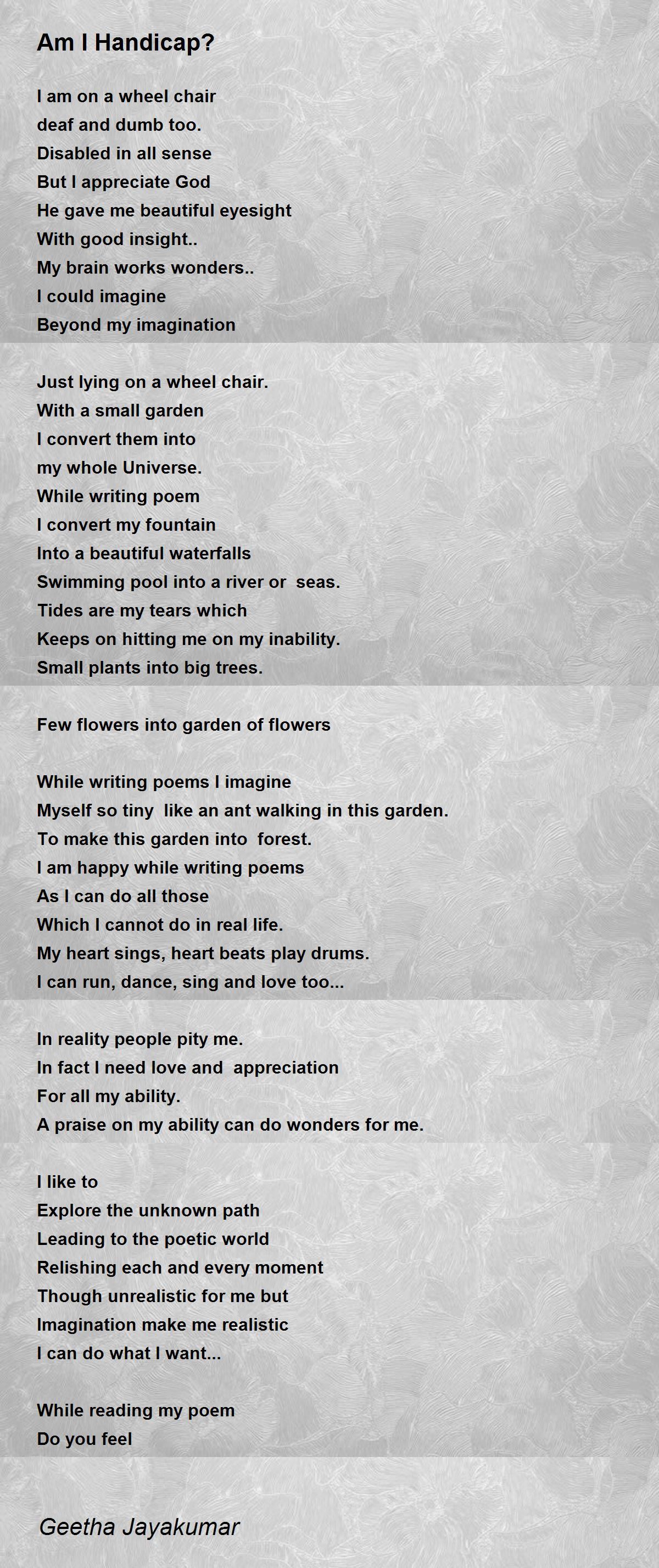 Am I Handicap? Poem By Geetha Jayakumar - Poem Hunter